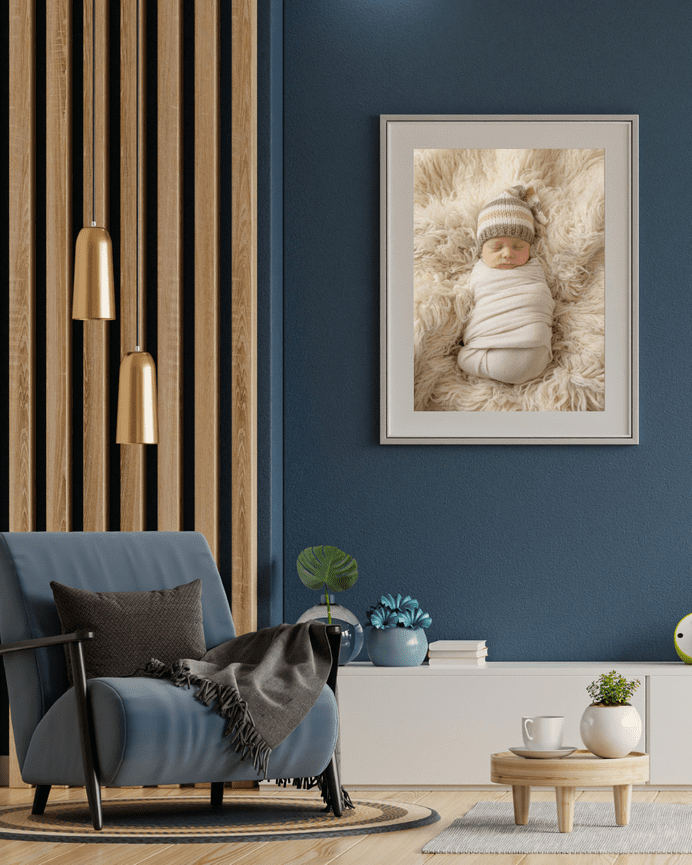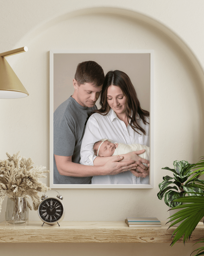 We’ll pre-plan colors, simple styling, and any meaningful details you’d like included in your baby’s first portraits. I provide everything needed for your newborn — wraps, blankets, textures, and cozy setups — all inside a warm, peaceful newborn photography studio designed with comfort in mind.